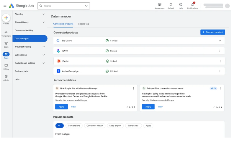 Google Ads Data Manager es una nueva herramienta que simplificará la habilitación de conversiones mejoradas para clientes potenciales y la segmentación por clientes de numerosos socios. Esta herramienta estará disponible en general en Google Ads a principios de 2024.